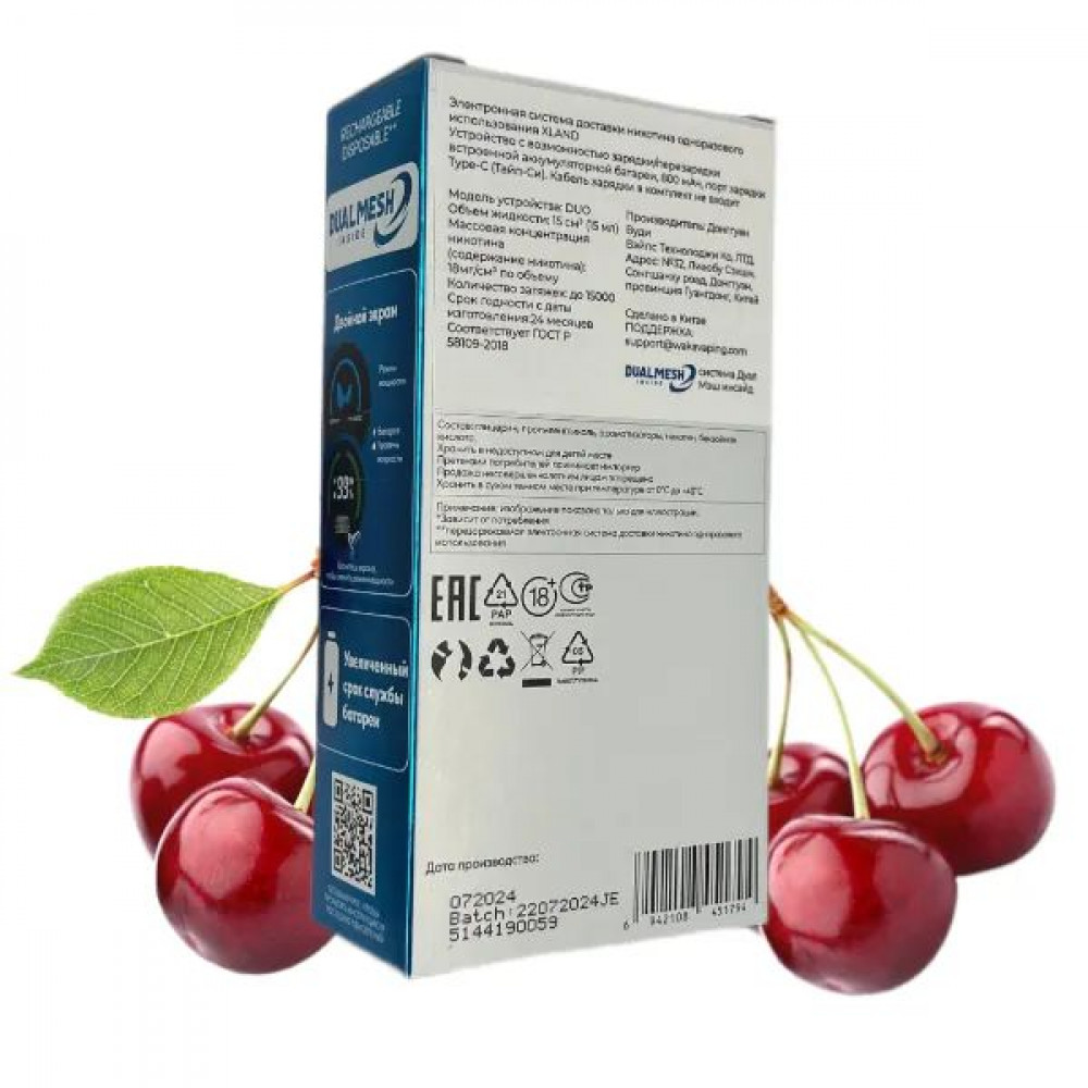 | ИспарительDual Mesh | Количество затяжек, шт15000 | ЛинейкаWAKA XLAND |